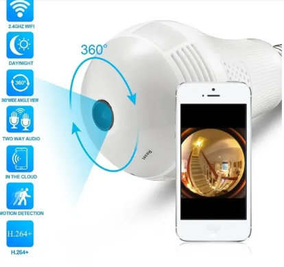 Panoramska 360 WiFi kamera u sijalici je praktično sigurnosno rešenje koje se lako postavlja u standardno sijalično grlo, omogućavajući video nadzor sa 360° pregledom prostora putem mobilne aplikacije.